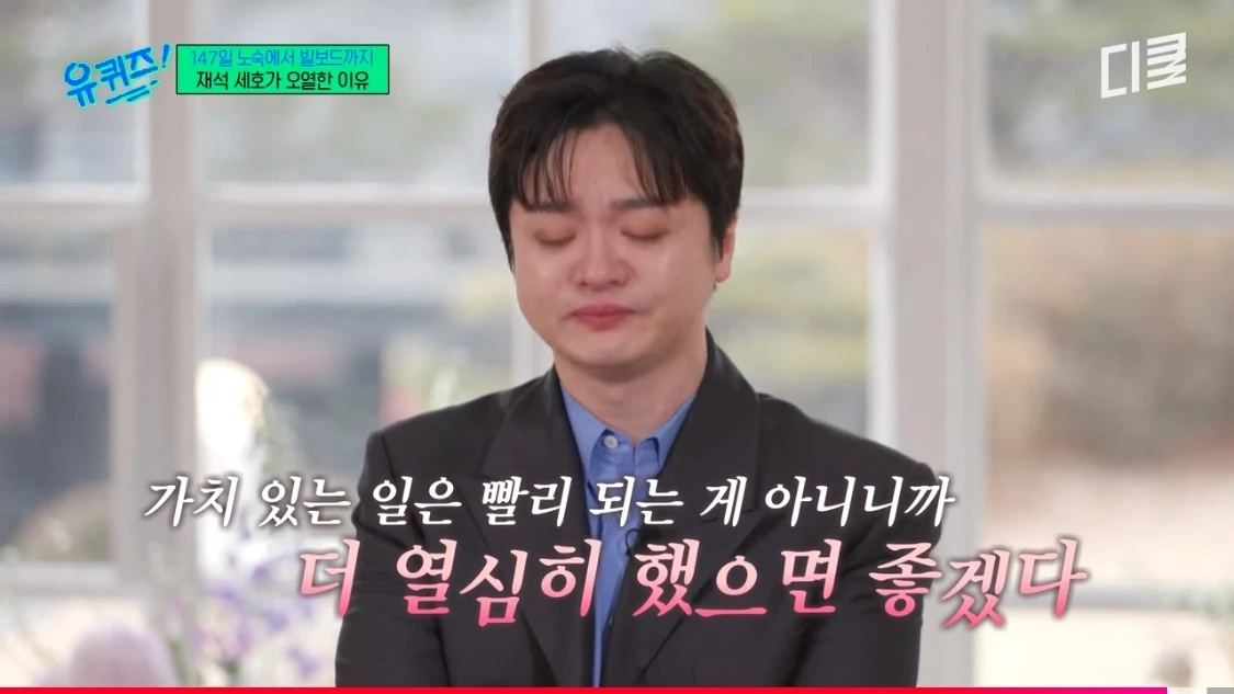 가장 힘들었을 때의 나에게 해주고 싶은 말을 묻는 유재석의 질문에 그는 오래도록 눈물을 삼키며 말을 잇지 못하다 한마디를 떼었다.