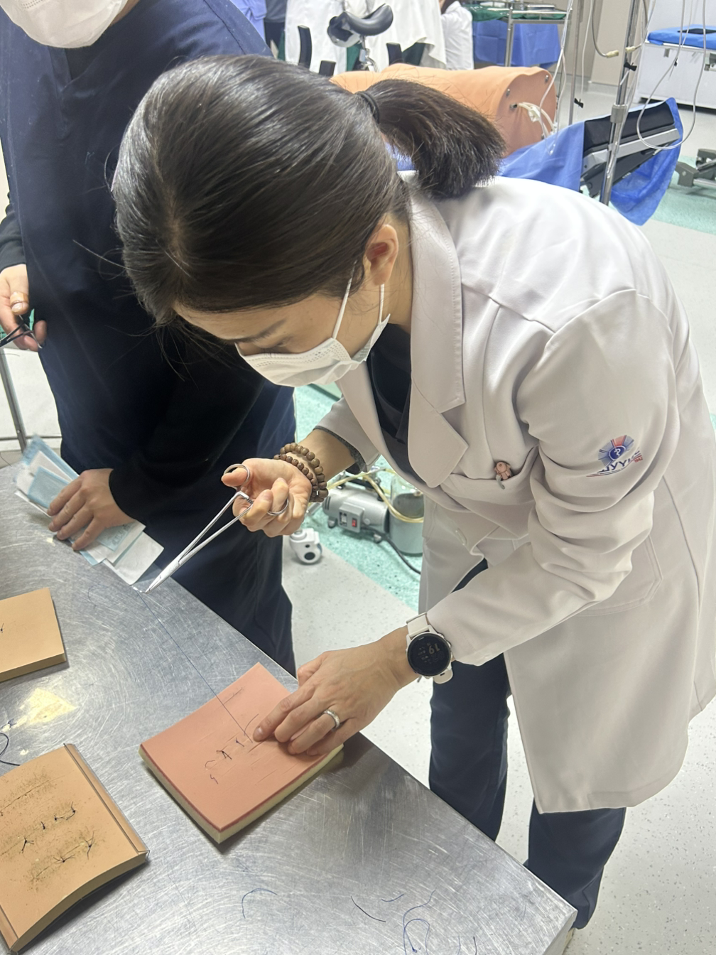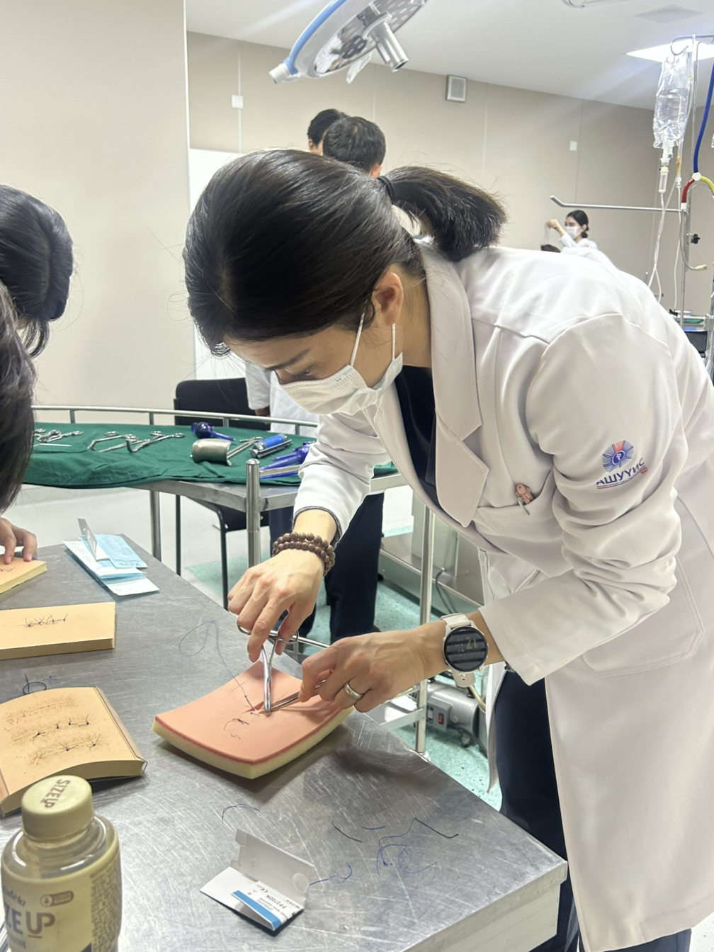 It was just a simple practice of suturing a skin pad with a needle, yet it felt incredibly real. One day, will I stand in front of an operating table and meet my patients? How many lives will pass through my hands, hovering between life and death? How much will I waver between a sense of duty and inexperience, and how much strength will I find in myself?