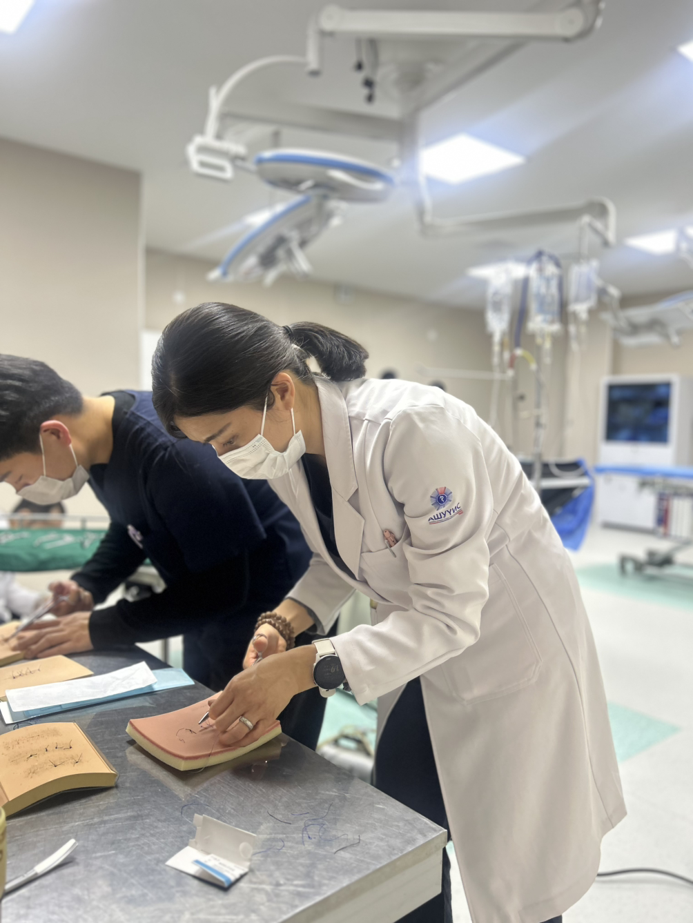 직접 니들을 잡고, 시저로 컷 하는 순간 동안 집중하고서 이 업에 삶을 걸어오신 레지던트 선배들과 교수님의 얼굴을 올려다봤다. 나름 서전으로 몽골에서 탑티어이신 교수님이라 한다. 부드러운 외양이시지만, 강단과 카리스마가 있다.