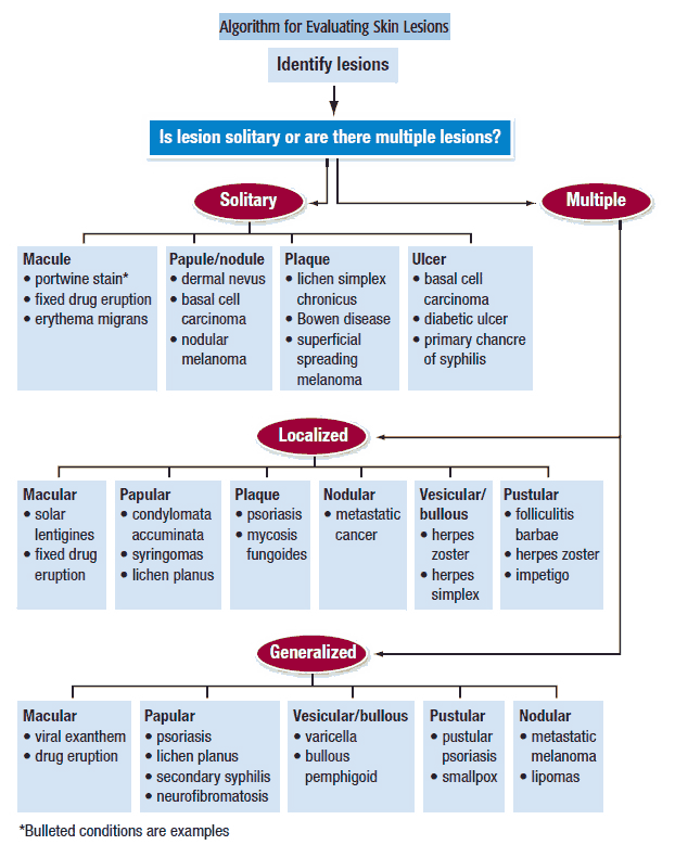 피부 병변을 확인할 때는 아래의 리스트에 입각해 확인한다.