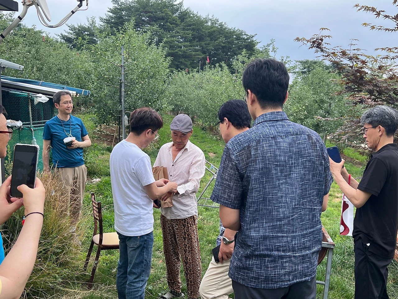 마지막 집은 정말 산 꼭대기에 있는 집이었습니다. 사람을 불러도 대답이 없습니다. 검은색 개가 살벌하게 짖어 댔습니다. 한참만에 사과 밭 끝에서 한 남자분이 뛰어내려오기 시작했습니다.