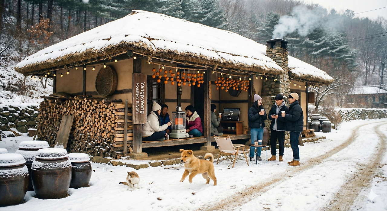 겨울에 양평의 따뜻한 찻집에서 사랑하는 사람과 차를 마신다. 눈오는 오후에 연기나는 굴뚝이 참 아름답다.말의 온도도 따뜻하다. 말의 온도처럼 글의 온도도 따뜻하게 만들자.