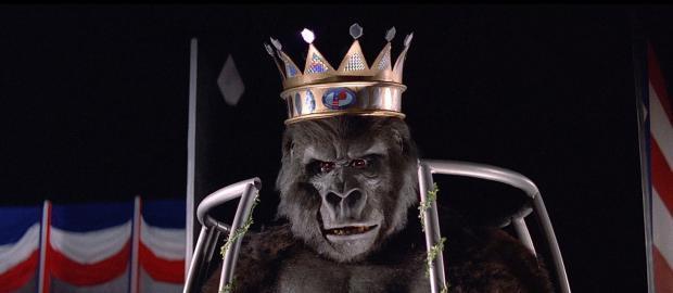 유인원을 주인공으로 하는 두 시리즈이지만 <혹성탈출>의 유인원은 지능이 고도로 발달한 생명체 또는 동물이며, <킹콩>의 유인원은 그야말로 괴력을 발휘하는 괴수이다. <성성왕>은 후자와 결을 같이한다. 1933년의 <킹콩>은 기획이 엎어진 공룡 영화의 유산으로 제작되었으며 이에 따라 미리 제작된 티라노사우루스와 트리케라톱스 등의 공룡이 등장한다. 그러나 공룡도 때려잡는 킹콩은 사람에 붙잡혀 해골 섬에서 뉴욕으로 끌려와 구경거리로 전락한다. 카메라의 플래시에 놀란 킹콩은 흥분하여 도시를 파괴하기에 이르고 저지하는 인간에 대항해 엠파이어스테이트 빌딩에 오른다. 하지만 연정(?)을 품었던 여인의 안전을 위해 죽음의 길을 택한다. <성성왕>이 타겟으로 잡았을 1976년작 <킹콩>은 1933년작과 줄거리는 비슷하지만 다른 점도 분명히 있다. 우선 1933년의 킹콩은 스톱모션으로 연기하지만 1976년의 킹콩은 주로 슈트 액션으로 연기한다. 선대의 킹콩은 무섭고 강인한 괴수로서의 면모를 많이 보여줬다면 후대의 킹콩은 부드럽고 연약해 보이기까지 한다. 공룡과의 격투는 물론 없으며 싸움도 시시한 편이다. 이 때의 킹콩은 한 여성과 교감하는 로맨티시즘에 초점이 맞추어졌다.