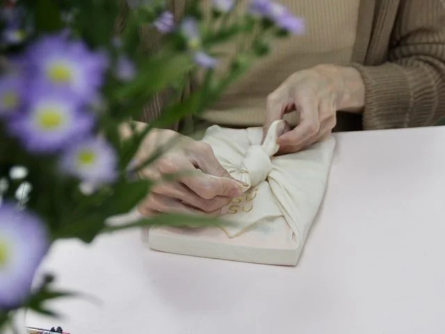보자기 포장을 다 하고 나면 꼭 해야 할 일이 있다. 매듭을 짓는 일이다. 와인 병처럼 길쭉한 선물에는 ‘수국 매듭’을, 직사각형 박스는 ‘궁중 매듭’을 했다. 소박한 광목보로는 책이나 지갑을 쌀 때 유용한 ‘단아한 매듭’을 익혔다. 매듭은 포장의 마무리이자 가장 중요한 포인트다. 매듭은 꼼꼼하고 단단하게 매야 한다. 느슨하고 어리숙하게 매듭을 지으면 아무리 아름다운 보자기라해도 흐트러지거나 풀어져 애써 포장한 선물이 헛수고가 된다