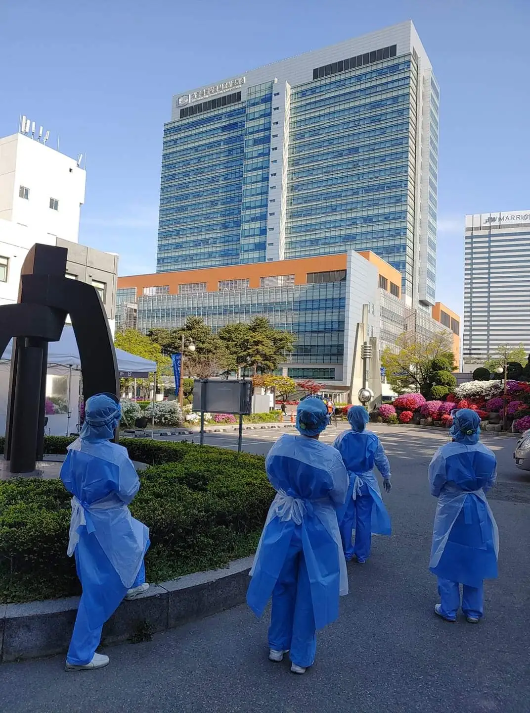 코로나 선별진료소에서 엄동설한과 찜통더위, 태풍과 긴 장마를 견디신 날들을 기억한다. 냉방조끼를 입으며 전투준비마치고 하루빨리 코로나19가 물러가서 본관에서 근무하고 싶다며 어벤져스처럼 팀원분들과 함께 선별진료소 앞에서 본관을 바라보시던 사진도 나는 기억한다.
