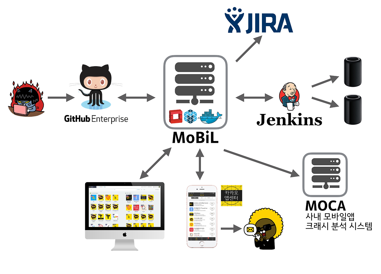 카카오에는 모바일 앱을 지속적으로 통합하고 지속적으로 배포하기 위해 자체 개발한 플랫폼 모빌(MoBil)이 있습니다.