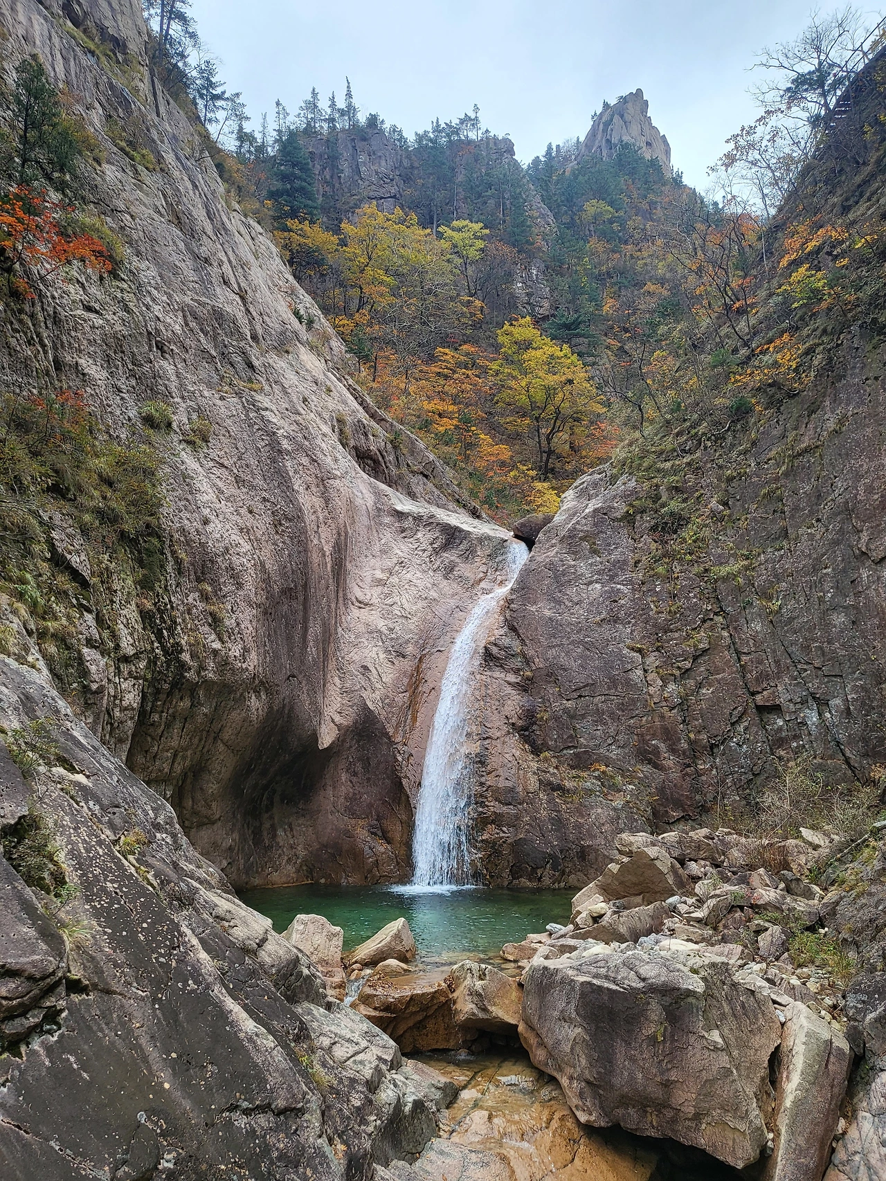 비선대까지 약 50분 걷고 나니 본격적으로 가파른 오르막길이었다. 마등령 삼거리까지 3.4km 구간은 평지가 거의 없었다. 해가 떠 있지 않아서, 이 길이 보이지 않아서 다행이라고 생각했다. 마등령 삼거리를 지나 공룡능선에 진입하니 오히려 편했다. 소문대로 내리막길과 오르막길의 도돌이표이긴 했지만, 뾰족뾰족한 봉우리와 능선을 빼곡히 매운 단풍나무에 넋을 놓고 걷다 보면 봉우리들을 지나있었다. 로프 구간은 자칫 바위만 계속 돼 지루할 수 있는 길에 변주를 줘 재밌었다. 약 20km, 15시간을 걸어 다시 어두워진 소공원에 도착했을 땐, 비록 발바닥이 타오르는 것 같았지만, <이상한 변호사 우영우>의 우영우가 처음 스스로 회전문을 통과하고 외쳤던 ‘이 감정은 뿌듯함입니다’라는 말이 목구멍까지 차올랐다.