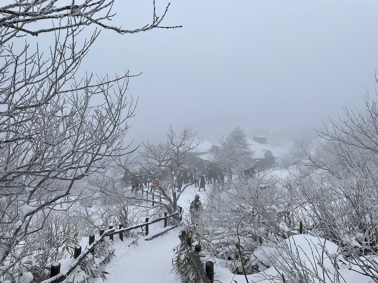 올해는 지난해에 이어 덕유산에서 상고대를 봤다. 작년에는 구천동탐방지원센터, 올해는 안성탐방지원센터에서 출발했다. 구천동에서 올라가면 계곡을 따라 완만한 길을 걷다 주봉우리인 향적봉에 가까워지면서 가파르고 좁은 길이 이어진다. 양 옆으로 순백의 나무들이 빼곡하고 아무도 밟지 않은 하얀 눈이 수북하다. 작년 산행에서는 전날 쌓인 눈에 더해 오르는 내내 함박눈이 내려줘 ‘겨울 왕국’에 온 것만 같았다.