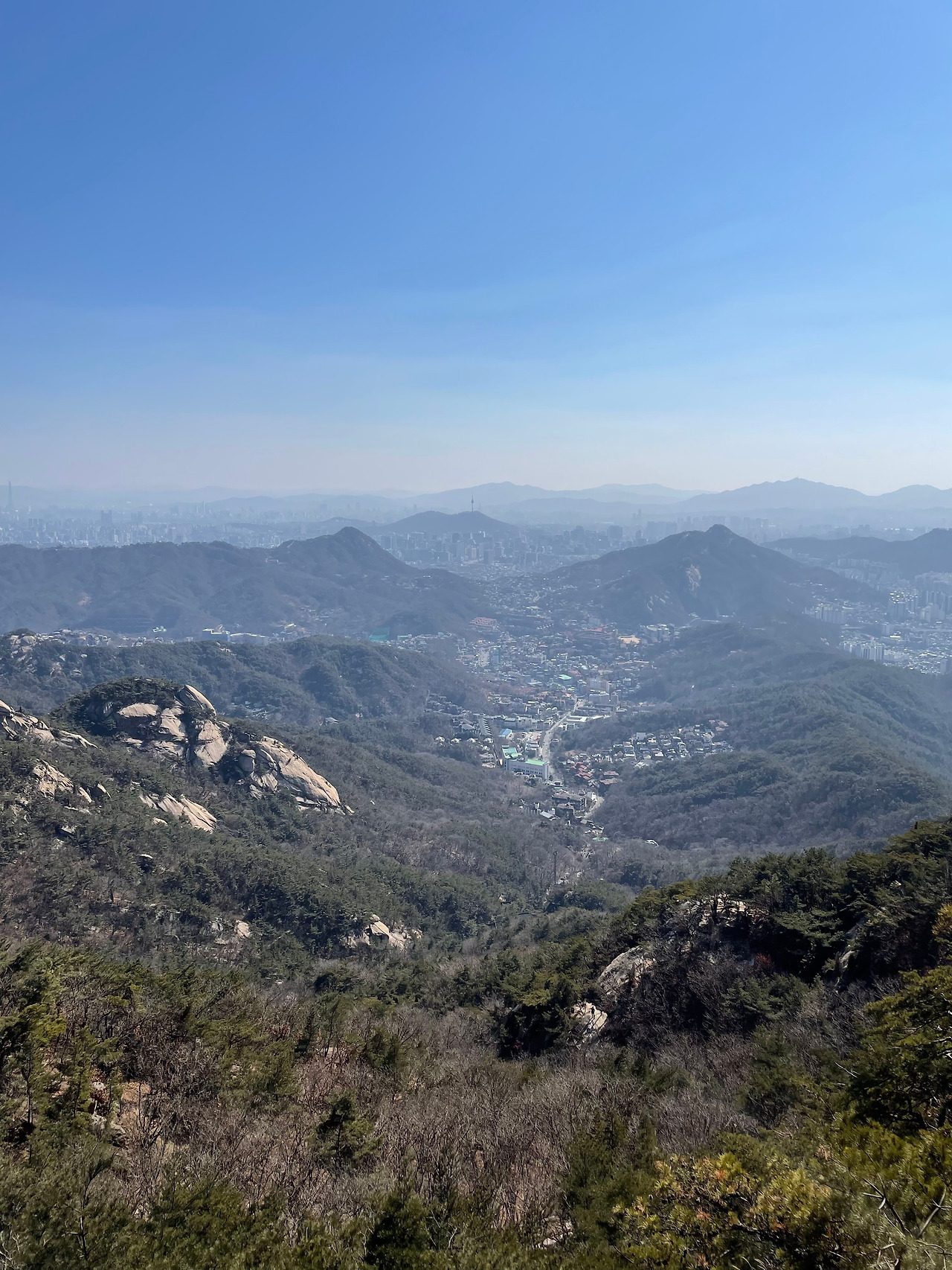 2년 만에 간 족두리봉은 '탈 만했다.' 움푹 파인 공간을 찾아 발로 딛고 손으로 잡으며 오르니 어느덧 족두리봉이었다. '위험 구간'이라 적힌 팻말을 지나 기지국이 설치된 꼭대기까지 올랐다. 탁 트인 풍경에 크게 숨을 내쉬었다.