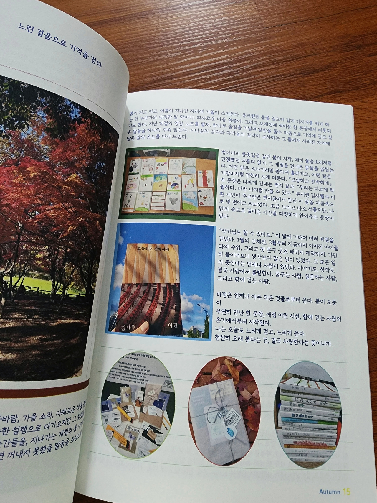 산책하기 더없이 좋은 계절인 가을이 왔다. 가을 냄새, 가을바람, 가을 소리, 다채로운 색을 품은 가을이 문장처럼 마음에 번진다. 계절의 시작은 언제나 비슷한 설렘으로 다가오지만, 그 설렘을 기억하는 일은 매번 새롭다.