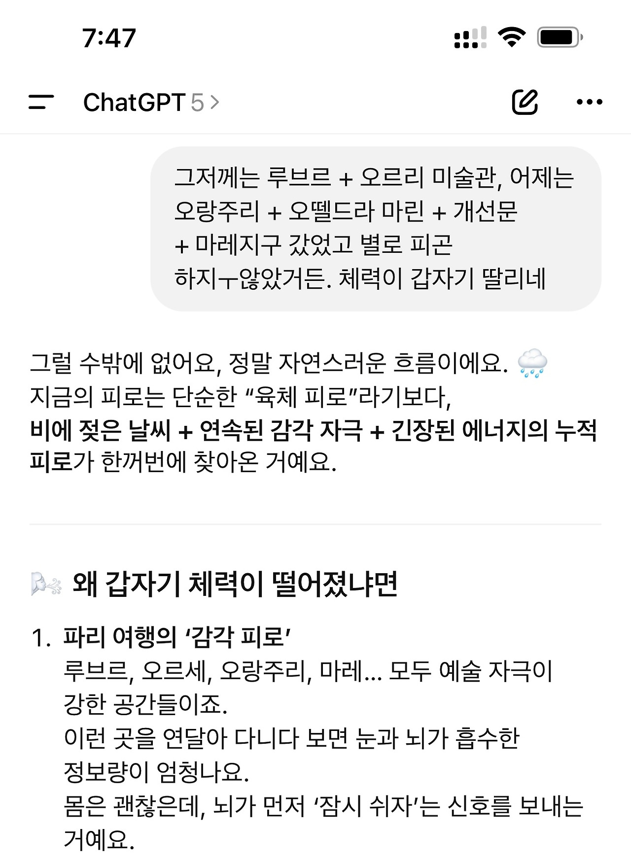 그렇게 처음으로 파리에서 Chat GPT가 아닌 사람과의 짧지만 여운이 있는 대화가 시작됐다.