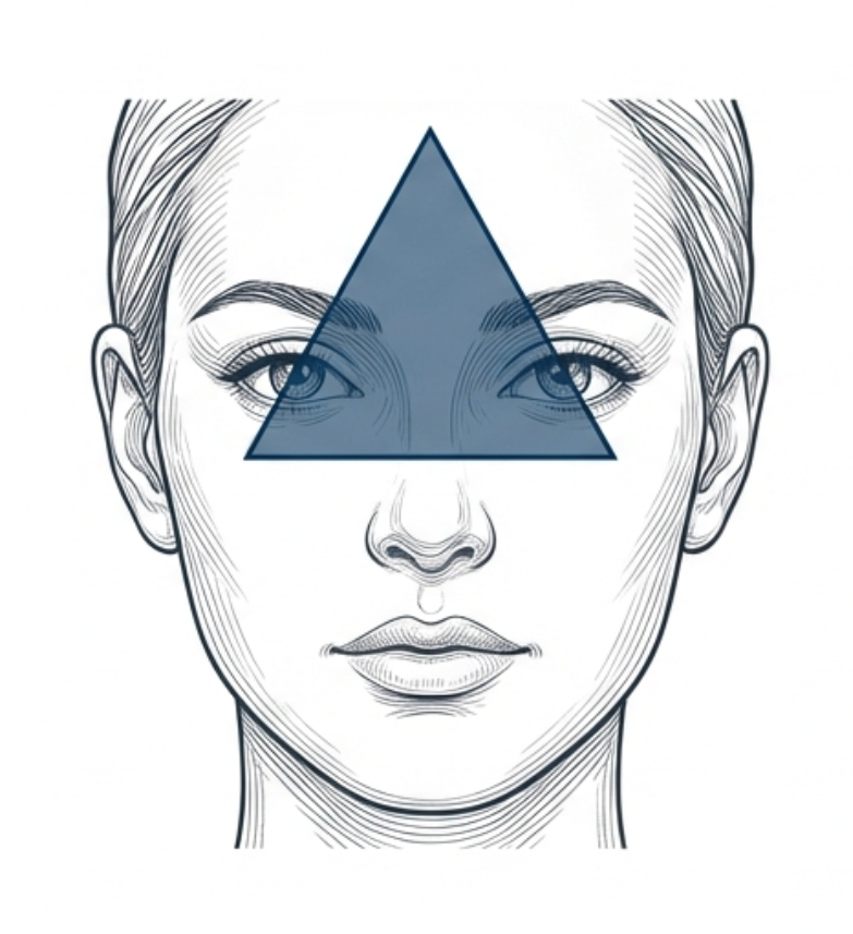 공식적 상황: 양쪽 눈과 이마를 연결한 삼각형