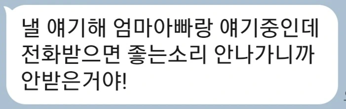 "내일 얘기할게, 엄마 아빠랑 얘기 중인데, 전화 받으면 좋은 소리 안나가니까 안 받은 거야."