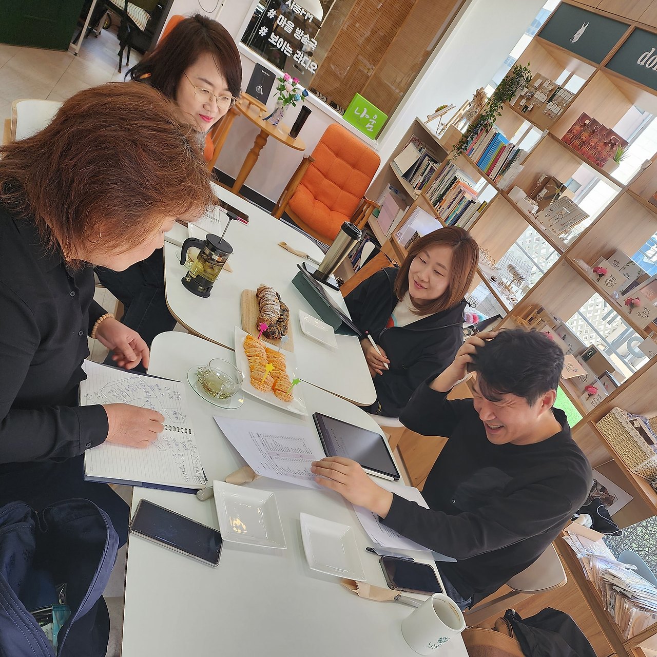 6월 16일은 의정부미디어센터에서 네 번째 회의를 했다. 전마미 공동대표인 고영준 씨가 마침 의정부에서 강의를 하는 날이라 함께 이야기 나눌 수 있었다. 의정부 마을활동가들이 운영하는 카페 송산에서 맛있는 다과를 내어주신 덕분에 에너지를 얻을 수 있었다. 환대란 이런 것이리라!