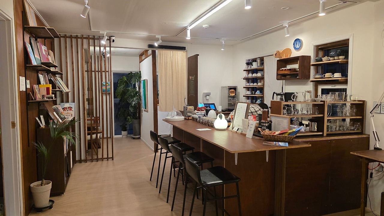 사진 속 공간은 원래 목조주택 1층의 게스트룸이었다. 주인장이 직접 인테리어를 하고, 아내가 쓴 책과 미술 분야 도서를 중심으로 큐레이션 한 카페 겸 서가로 다시 꾸몄다고 한다.