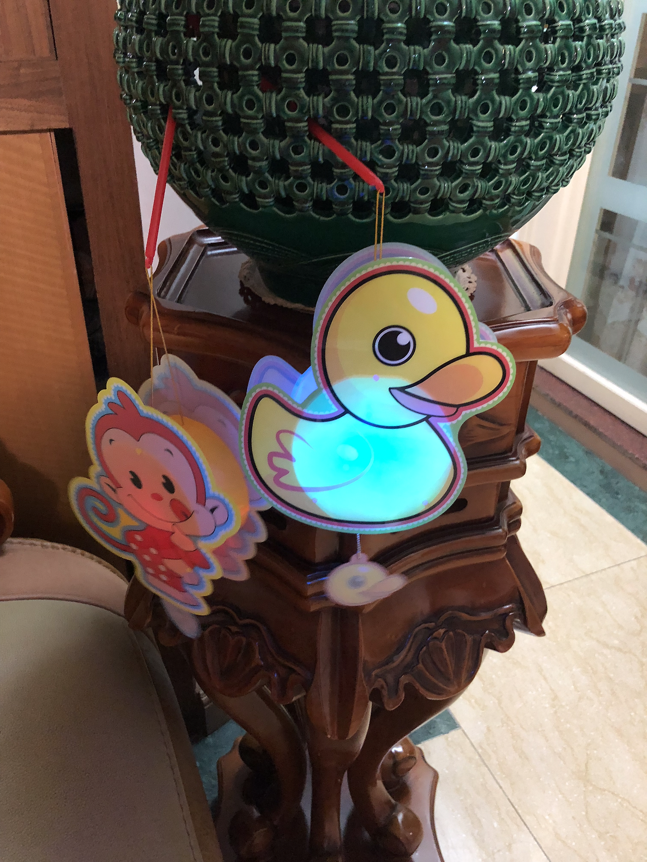중국 중추절은 한국처럼 많은 음식을 만들어서 제사를 지내지는 않는다. 간단히 좋은 일을 기원하는 등을 키고 밤을 즐기는 경우가 많다. 대부분은 큰 행사 없이 지나간다. 등은 다양한 종류가 있다. 이 등을 밤새 키고 달을 보며 소원을 빈다. 아이들 장난감 형식으로도 반짝거리는 등을 만들어 집에서 들고 이리저리 돌아다니기도 한다. 당근이도 이 등을 들고 한참을 뛰어 다녔다. 여러모로 재미있는 놀이 같다. 아이 뿐 아니라 어른들도 이런 아름답고 귀여운 등을 보며 즐겁게 시간을 보낸다.