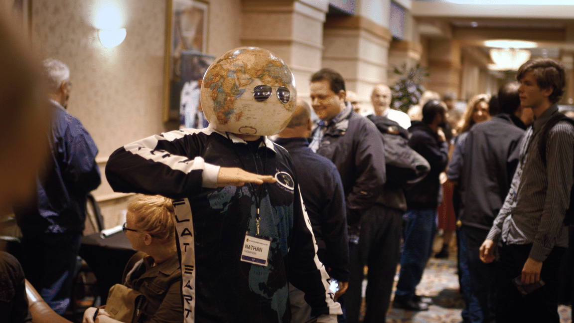 그들이 집단화되고, 공식적인 행사를 할 정도의 세력이 되는 과정은 영화 <그래도 지구는 평평하다> 속 플랫어스들이 공식화되는 과정과 동일하다. 영화는 개개인에 집중하다 영화 후반부 공식행사를 가지는 모습을 보여주며 영화를 마무리하게 되는데, 최대한 그들의 생각과 행동을 온전히 전달하고 있다. 농담 같은 정보를 진짜라고 믿는 그들의 실생활은 일반 사람들과 크게 다르지 않다. 그저 우리 주변에서 흔히 볼 수 있는 일반 사람들이다.