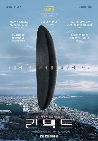 영화 <컨택트>는 외계인에 대한 영화이지만 시간과 기억에 대한 영화이기도 하다. 12개의 외계 비행체가 세계 각지의 하늘에 도착하면서 언어학 전문가인 루이스(에이미 아담스)와 과학자 이안(제레미 레너)이 현장에 투입된다. 이들은 군인들과 같이 외계 물체 안에 자리한 외계인들과 조우하게 되고, 이들의 목적이 무엇인지를 알아내기 위해 그들의 언어를 연구하기 시작한다. 특히 루이스는 보다 적극적으로 외계인들과 소통하려 노력하고 그들이 사용하는 언어의 의미를 파악하기 위해 노력한다.