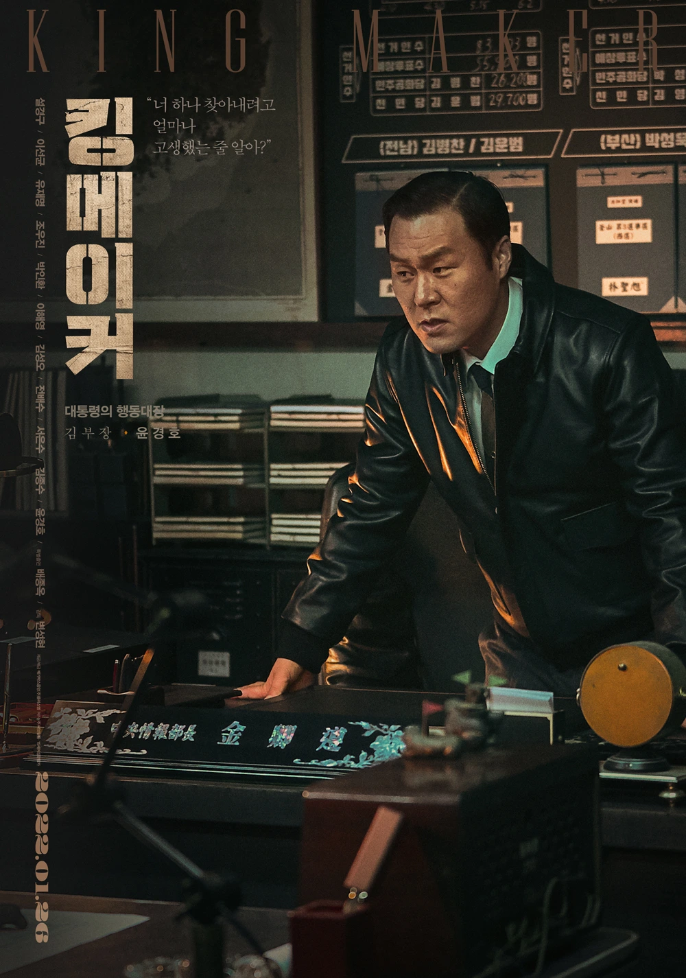 연출을 맡은 변성현 감독은 2017년 영화 <불한당:나쁜 놈들의 세상>으로 이 영화 만의 팬덤을 가지고 있다. 크게 관객을 모은 건 아니었지만 이 영화를 좋아하는 관객들은 이 영화를 계속해서 재개봉시키면서 좋은 반응을 보여줬었다. 이번 <킹메이커>에서는 좀 더 안정적이고 세련된 연출로 찬찬히 두 인물의 뒷모습을 담고 있다. 이야기는 좀 더 촘촘해졌고 인물의 감정을 따라가기에도 어렵지 않아 이전 연출작보다 더 진일보한 모습을 보여준다.