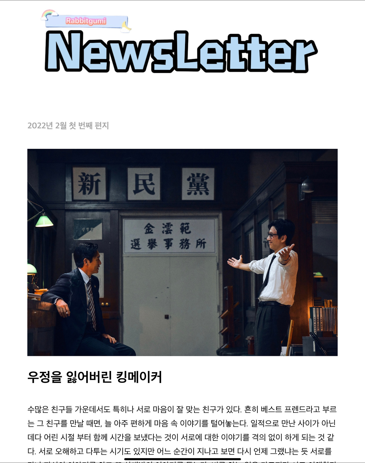 2월 1번째 뉴스레터는 2월 6일(일) 0시에 발송됩니다.