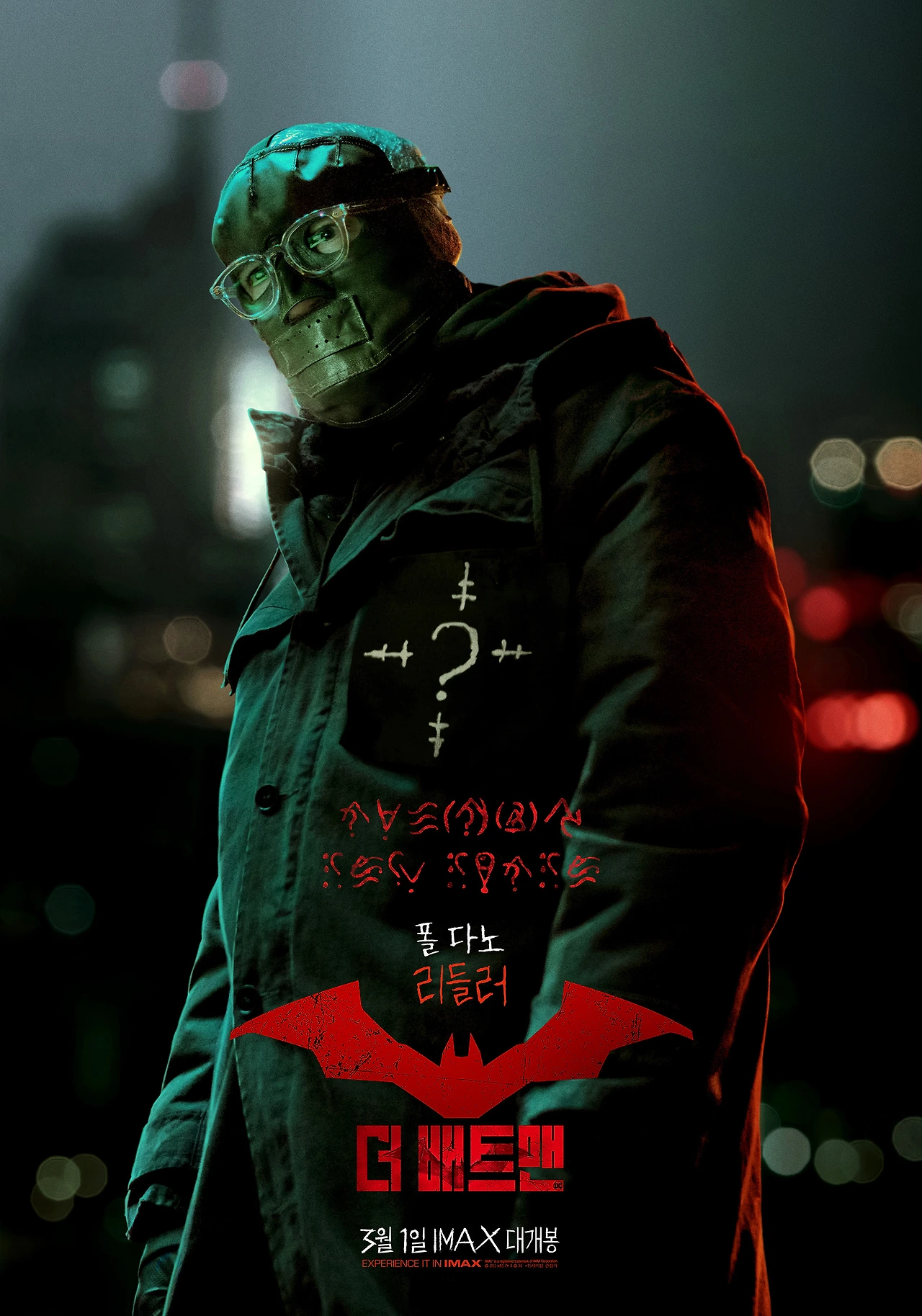 모든 배트맨 시리즈가 그렇듯 고담시는 사회의 시스템이 정상적으로 작동하지 않는다. 그 틈은 온갖 범죄자들이 활발하게 활동할 수 있게 만드는데, 대표적으로 등장하는 것이 펭귄(콜린 파렐)과 팔코네(존 터투로)다. 이들은 고담시의 음지를 장악하고 있는 조직을 대표하는 인물이고, 배트맨이 시종일관 상대하는 조직이기도 하다. 하지만 이번 <더 배트맨>에서는 이 모든 악당을 비롯해 배트맨조차 리들러의 게임 안에서 자신들조차 모르게 이용당하는 인물처럼 보인다. 그만큼 이번 영화에서 악당 리들러는 그만의 방식으로 고담시의 음모를 파헤치고 정의를 실현하려는 자로서 강력한 존재감을 보여준다.