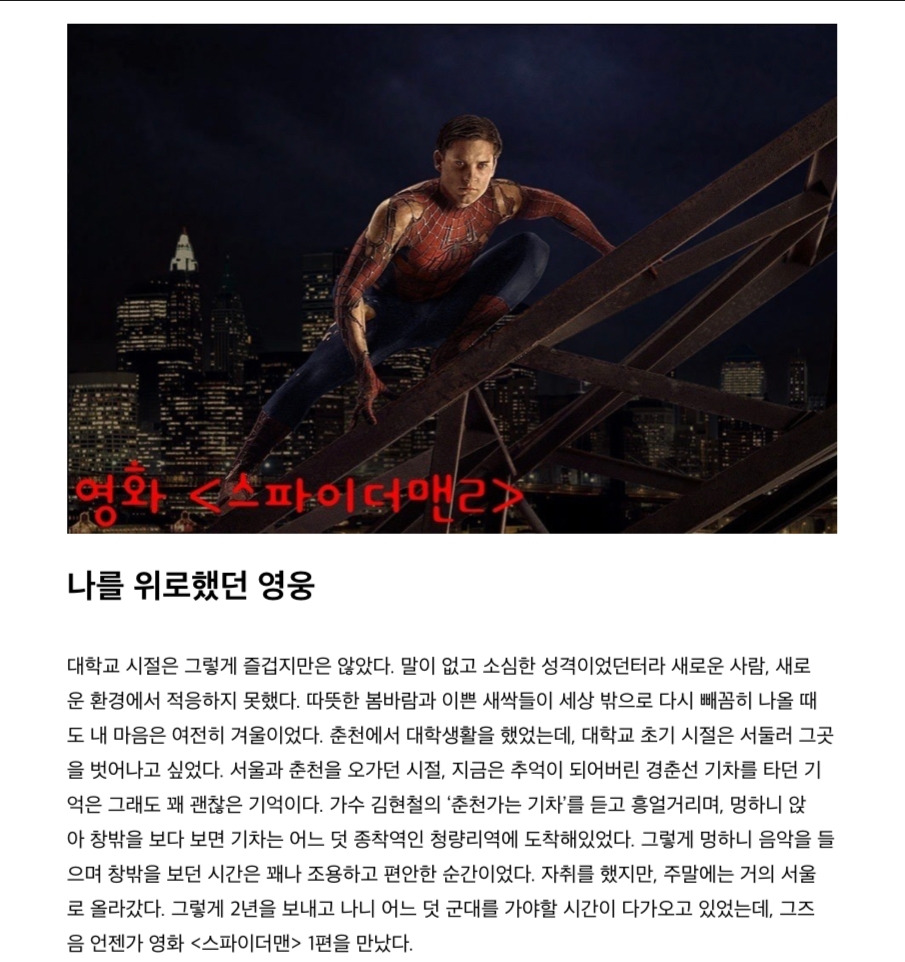 저에게 인생영화인 <스파이더맨2>에 대해서도 생각해봤어요.