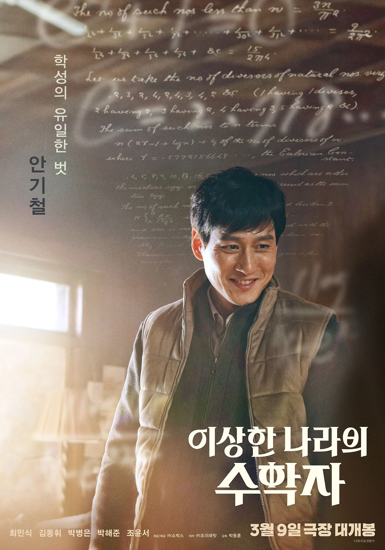 영화 <이상한 나라의 수학자>는 수학 시험 성적 때문에 고민하는 지우(김동휘)의 이야기를 담는다. 지우는 현재 공부 잘하는 학생들이 다니는 기숙학교에 다니고 있다. 과거 사고로 아버지를 잃고 홀로 남은 어머니와 떨어져 살면서 최대한 어머니의 기대에 부응하기 위해 노력하는 인물이다. 하지만 모든 과목 중에서 수학이 그를 가로막는다. 수학 성적은 하위권이고, 그것 때문에 그의 담임 선생님(박병은)은 일반학교로 전학을 권유한다. 그때 지우는 학교의 경비원이면서 숨은 수학천재 학성(최민식)을 만난다.