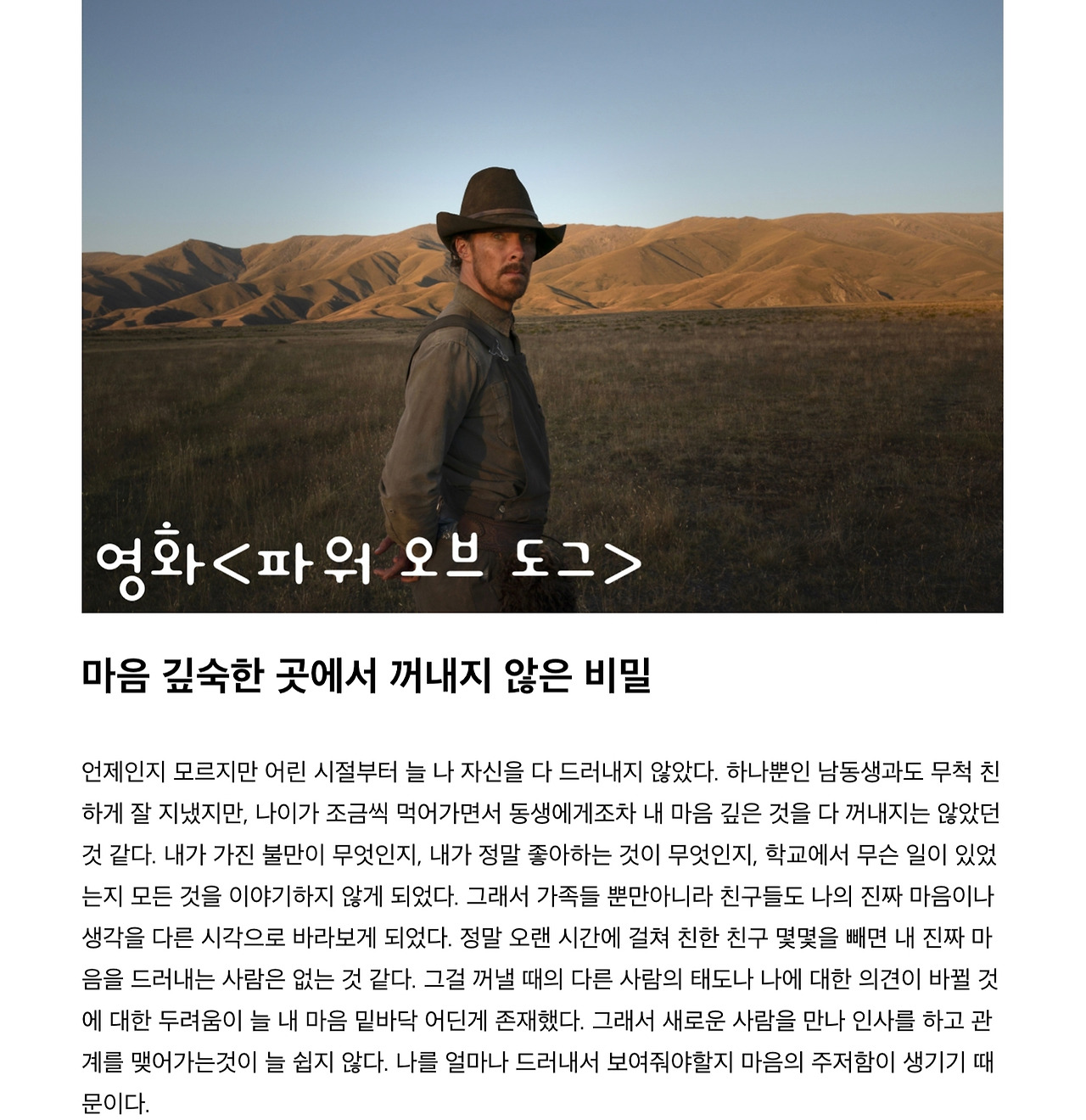 내 안에 억압된 무언가를 떠올리다보니 영화 <파워 오브 도그>의 필이라는 인물을 생각하게 되었어요.