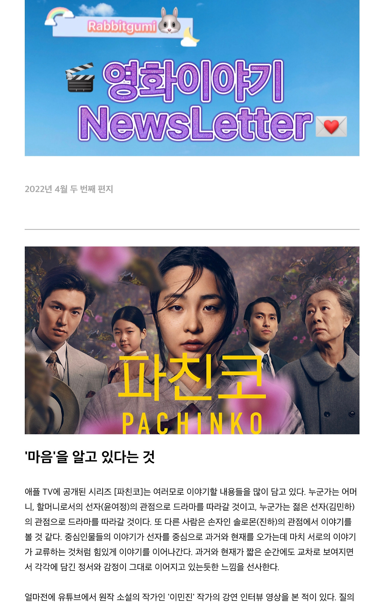 이번 주 일요일 송부되는 영화 이야기 뉴스레터를 구독하시면 읽어보실 수 있어요. :)
