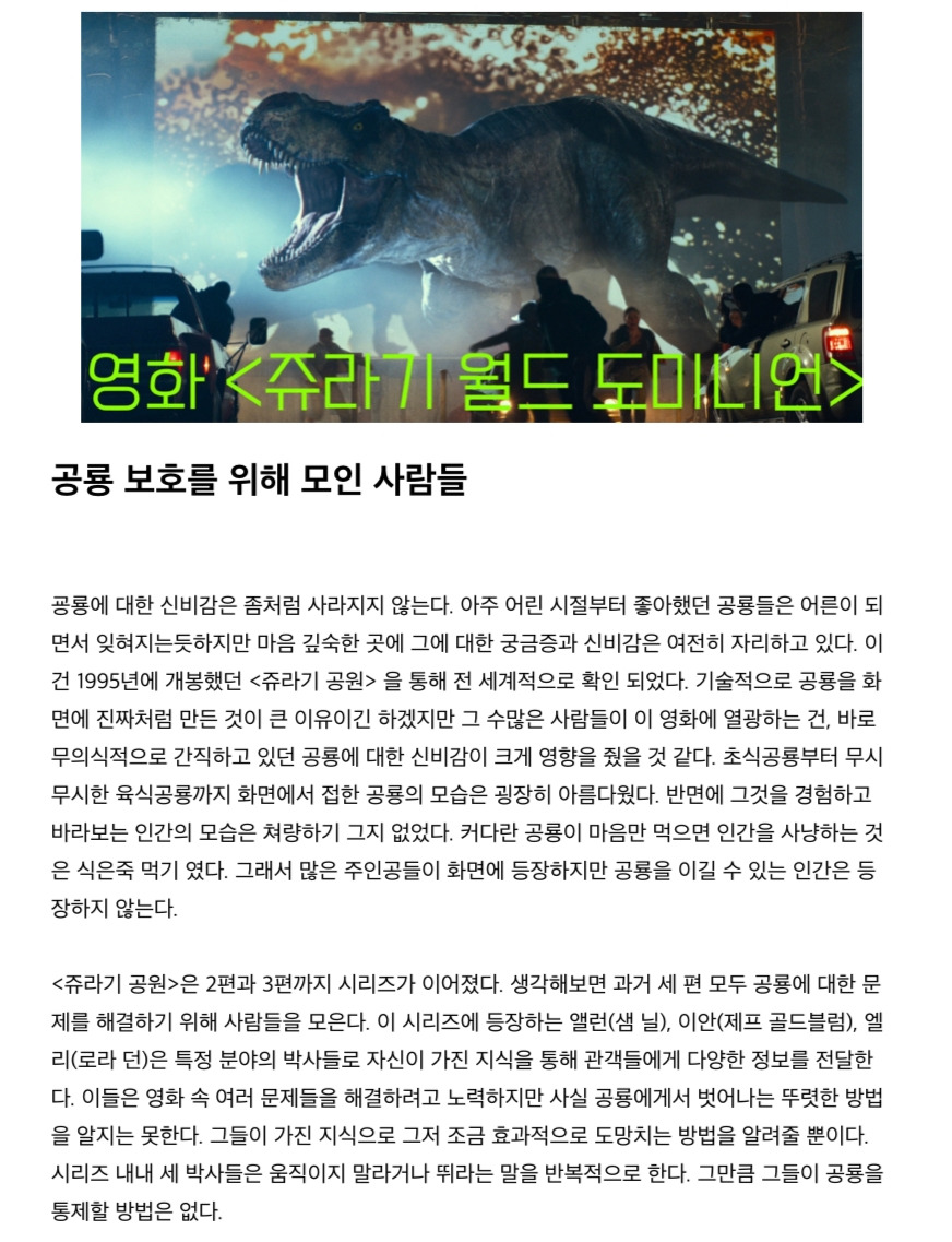 Rabbitgumi의 영화이야기 유료 뉴스레터에도 영화 <쥬라기 월드 도미니언>과 관련된 내용이 담겨있습니다.