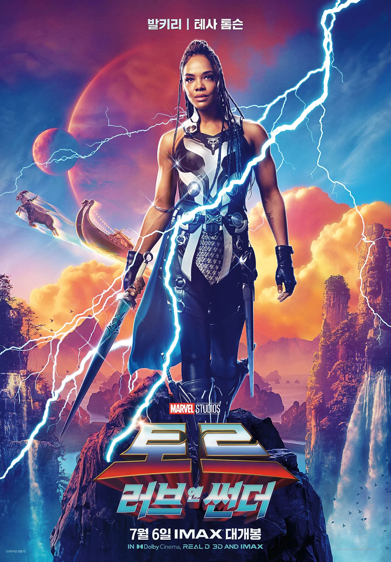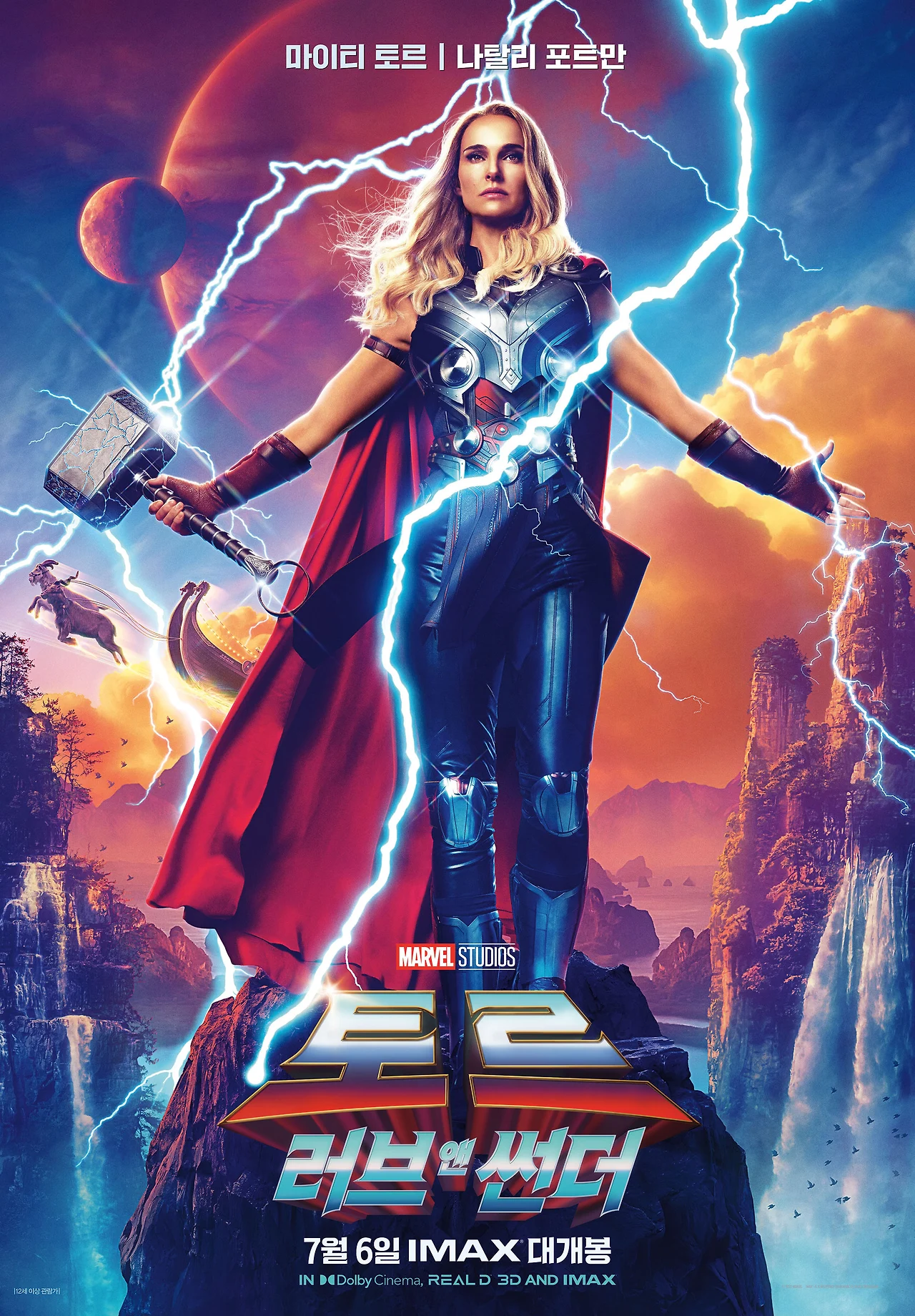 영화 <토르 러브 앤 썬더>는 토르와 제인이 다시 재회하면서 벌어지는 일을 담는다. 마블의 1세대 히어로인 토르는 이번 영화가 네 번째 시리즈다. 다른 히어로 영화들과는 다르게 가장 많은 단독 영화를 만들어내고 있다. 1편과 2편에 등장했던 제인 캐릭터를 3편에는 등장시키지 않았다가 이번 4편에는 다시 등장시키게 되는데, 그래서 이번 영화에는 로맨스적인 요소가 상당 부분 다시 포함되었다. 3편이 유머와 경쾌함을 극대화시켰던 영화라면, 이번 4편은 유머와 경쾌함은 조금 톤을 낮추고 로맨스에 좀 더 집중하게 된다.