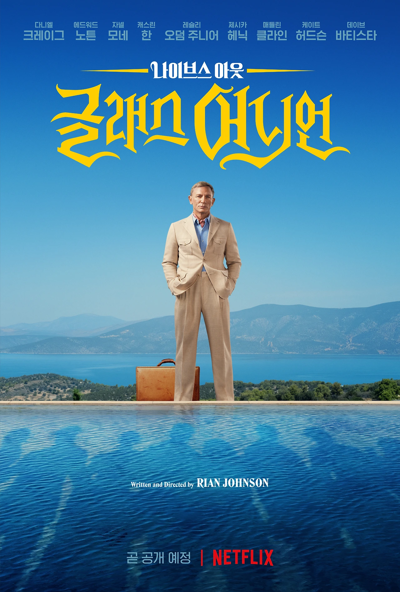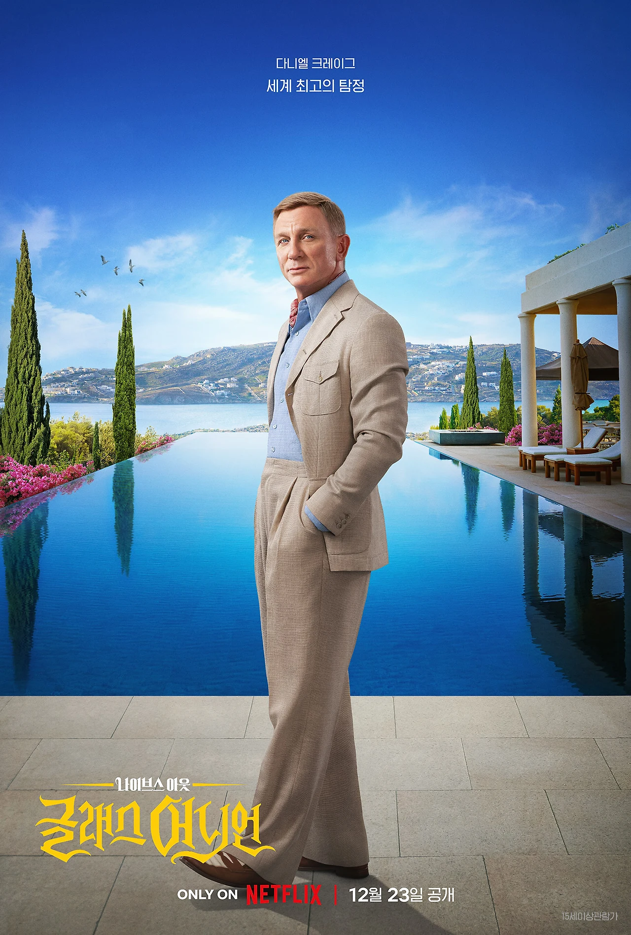 영화를 연출한 라이언 존슨 감독은 전작 <나이브스 아웃>의 세계관을 가지고 와 새로운 추리극을 만들어냈다. 이야기 자체가 이어지지는 않지만 탐정 블랑이 새로운 사건을 맡게 되는 설정으로 동일한 세계관에서 추리가 펼쳐진다. 원작이 없는 추리 영화로는 꽤 높은 완성도를 가지고 있고 관객이 쉽게 전개를 예측하지 못하게 만드는 이야기는 넷플릭스라는 플랫폼에서 공개되면서 더 많은 사람들이 이 추리극을 관람할 수 있는 기회를 만들었다.