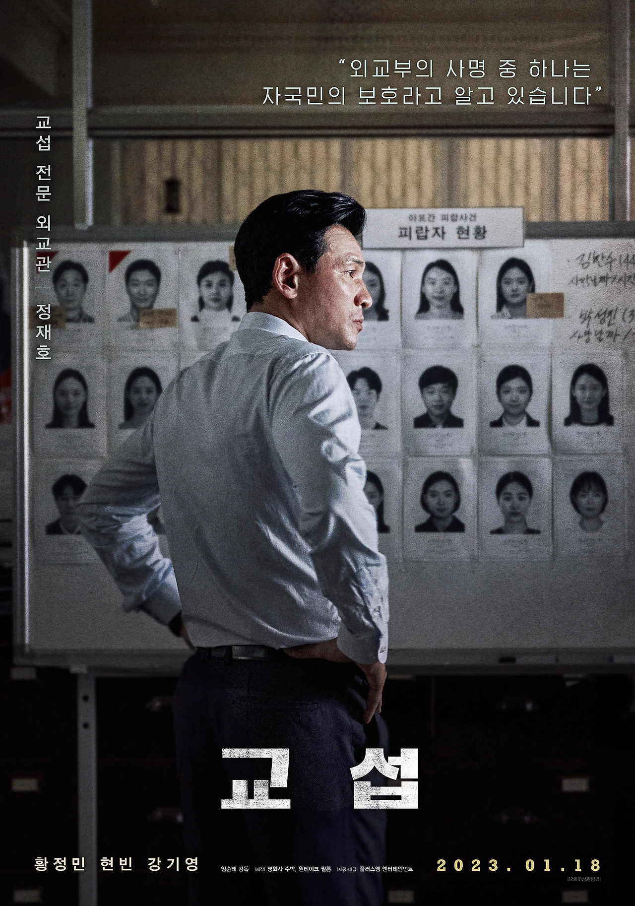 영화 <교섭>은 국민을 보호하려는 국가의 절실한 노력이 담겨있는 영화다. 과거 샘물교회 피랍 사건을 기본 줄기로 삼고 구체적인 내용을 영화적으로 재구성한 영화는 외교관 재호(황정민)와 국정원 요원 대식(현빈)이 피랍된 사람들을 구하기 위해 분주하게 움직이는 모습을 보여준다. 사실 영화 속 두 사람은 국가의 힘을 대신하여 교섭을 진행하는 인물들이다. 이들은 처음에 다른 접근 방식으로 피랍된 사람들을 구하려고 하지만 그 차이는 조금씩 줄어든다.