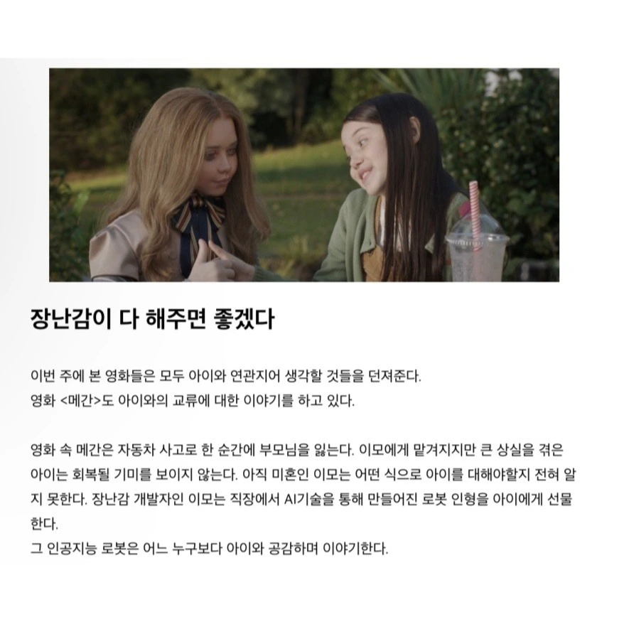 영화 <메간>을 보면서는 아이와 보내는 시간의 양이 중요하다는 생각을 했어요.