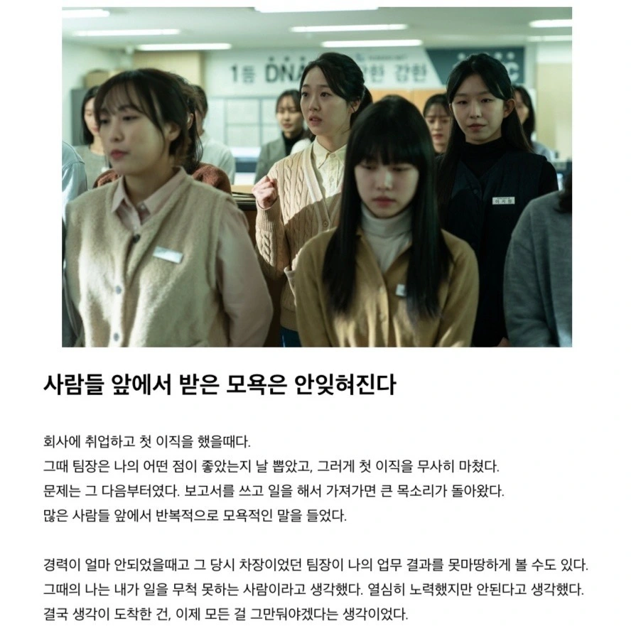 다행이 저는 자살보다는 퇴사를 선택했지만, 아마 조금 더 참았으면 저도 극단적인 생각을 했을지도 모르겠어요.
