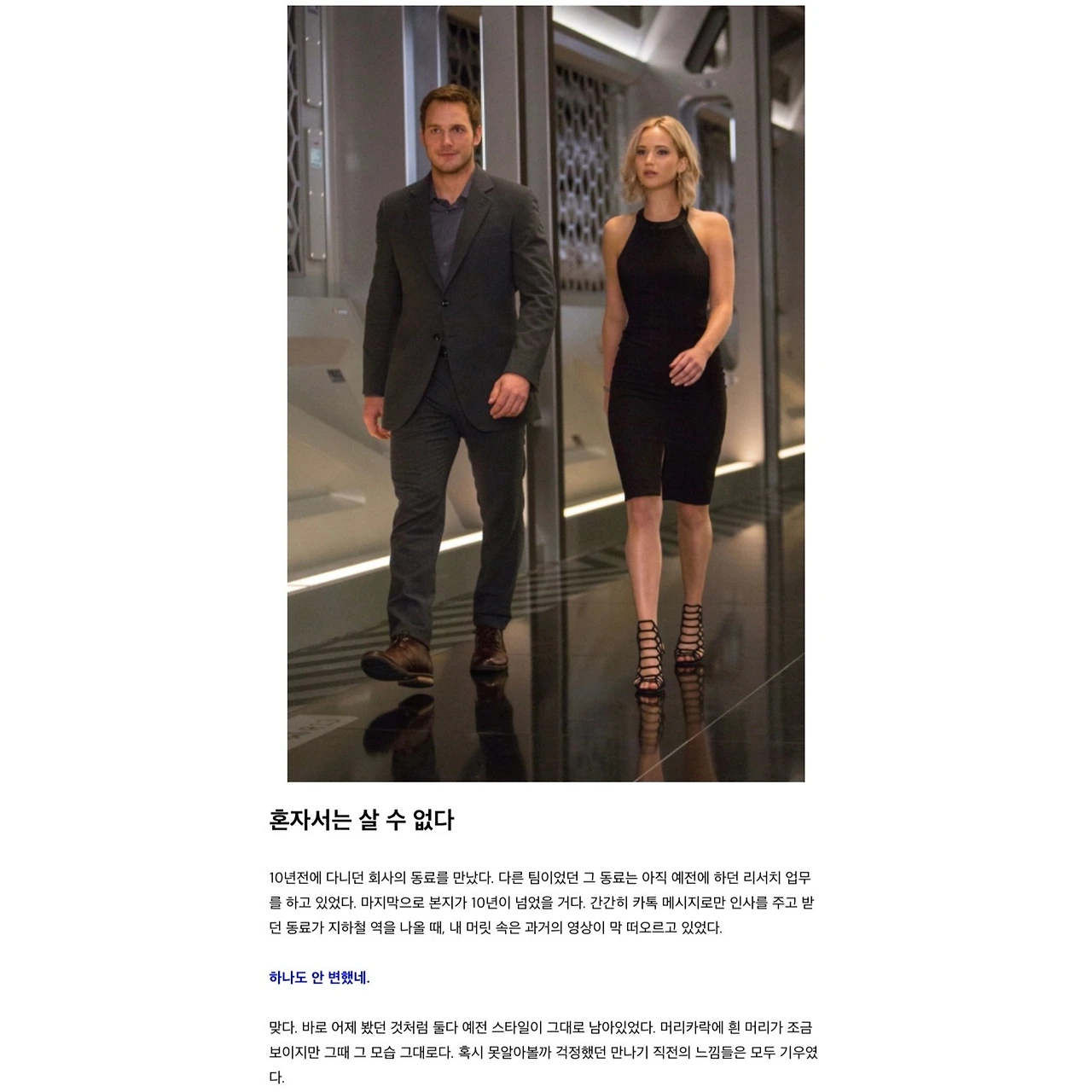 오랜만에 만난 동료를 만나고 영화 <패신저스>를 다시 보게 되었는데,