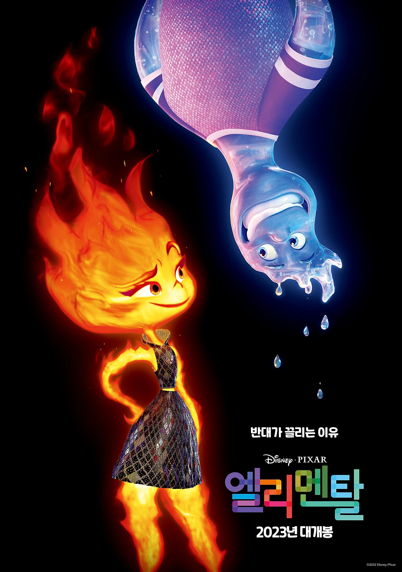 픽사의 새로운 애니메이션 <엘리멘탈>의 세계에는 물, 불, 흙, 공기라는 4개의 원소가 살고 있다. 이들이 함께 어우러져 사는 '엘리멘트 시티'는 이 네 가지 원소가 함께 살 수 있는 환경이 조성되어 있고, 꽤 큰 대도시다. 여기에 살고 있는 엠버(목소리: 레아 루이스)는 불의 원소다. 불의 원소들이 살고 있는 지역을 떠나 대도시로 온 엠버의 부모님은 힘들게 가게 하나를 만들어 대도시에 자리 잡으면서 엠버를 키워냈다.