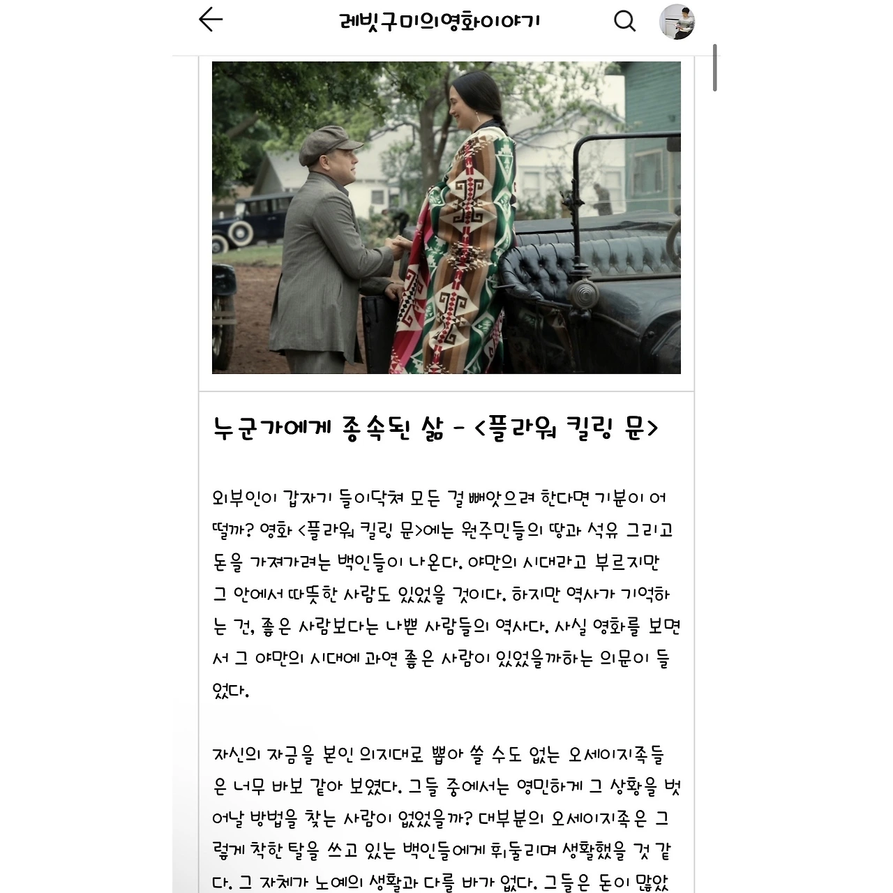 긴 러닝타임에도 불구하고 백인과 오세이지족의 이야기를 끝까지 지켜보게 만들죠.