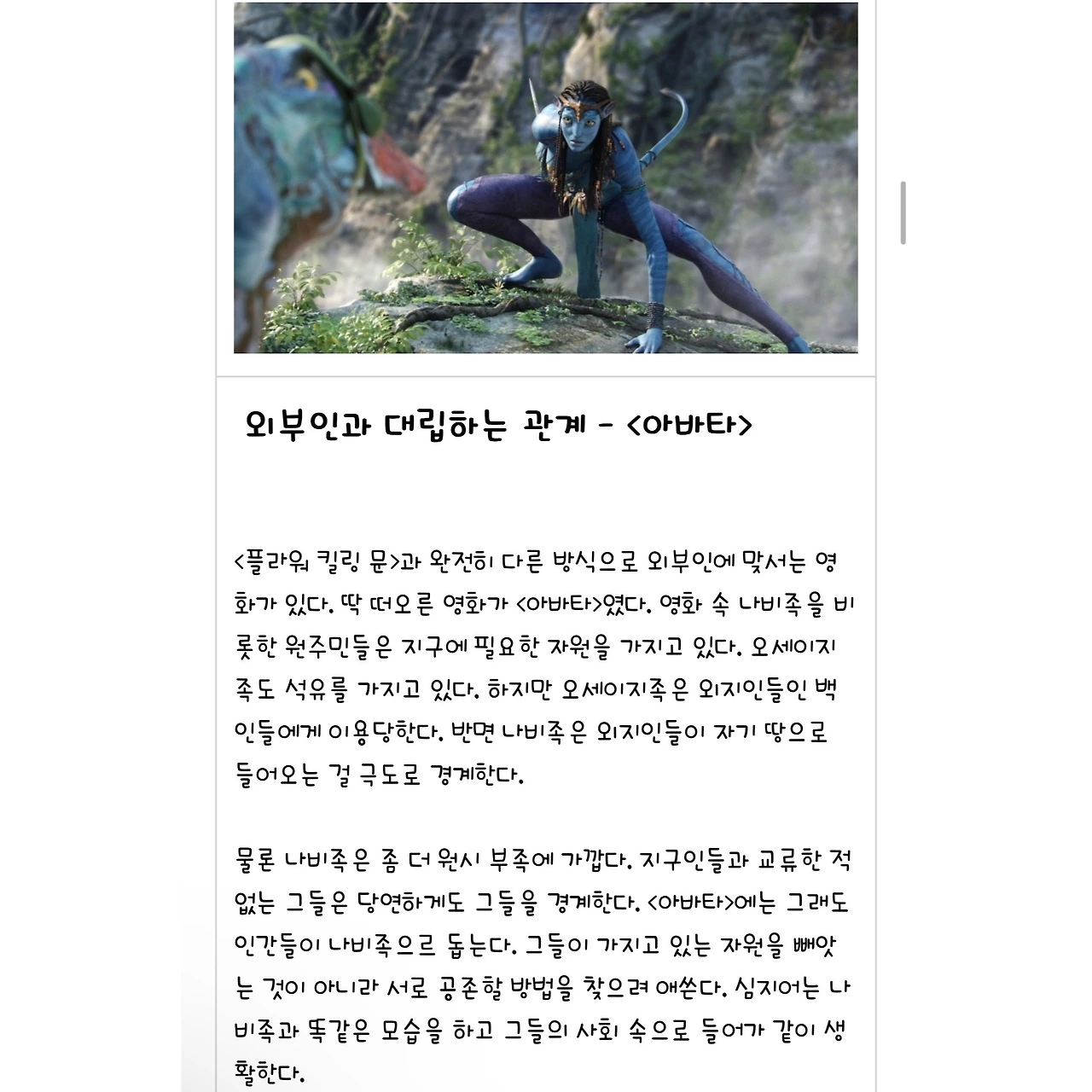 <아바타>에서 주인공이 나비족을 도왔던 것처럼요.