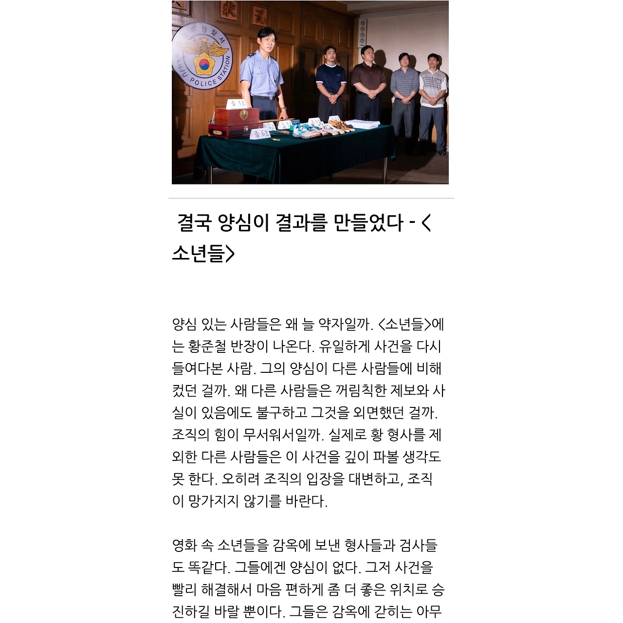 <소년들>은 한 사람이 지켜낸 양심이 결국 승리하는 이야기죠.