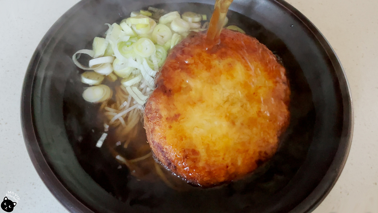 - 국수는 뜨거운 육수에 한번 담갔다 꺼내 그릇에 담고 고로케와 대파를 얹고 육수를 부어준다.