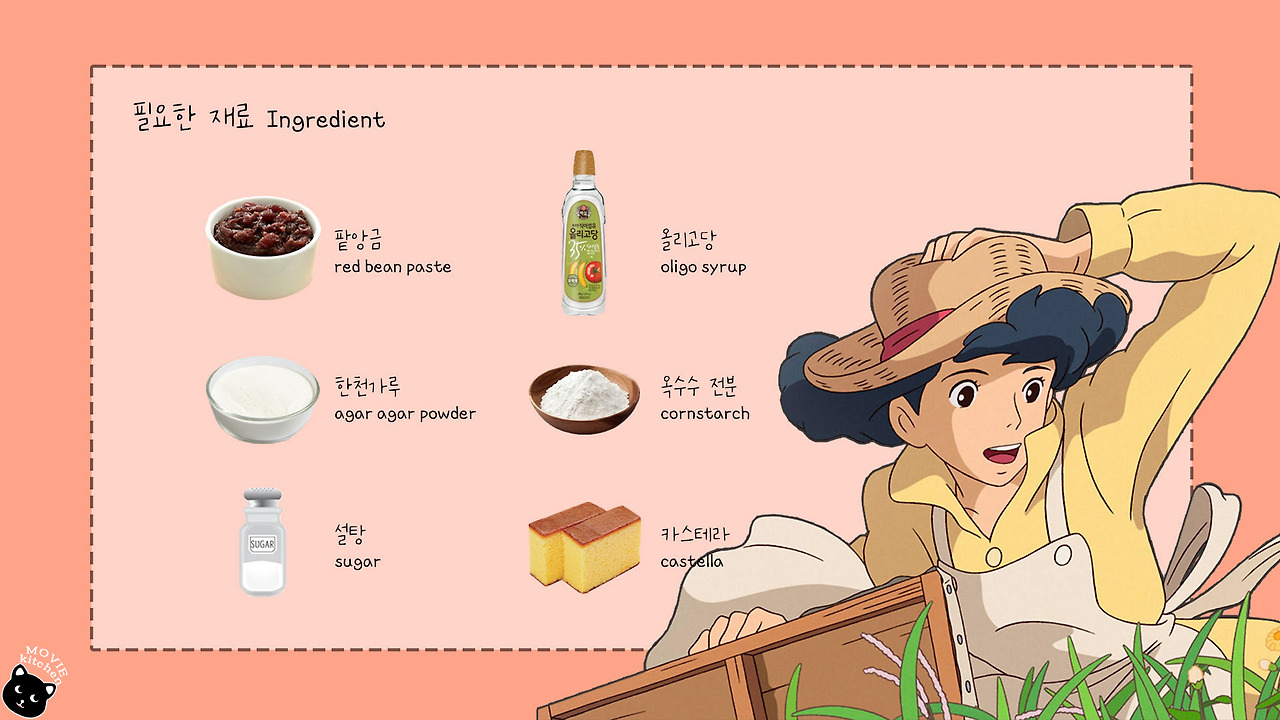 팥앙금(250g), 한천가루(5g), 설탕(1Ts), 올리고당(2Ts), 옥수수 전분(10g), 카스텔라