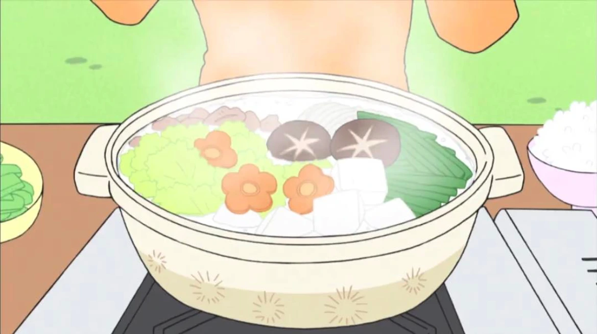 (참고로 짱구 어머니는 소고기, 두부, 배추, 부추, 당근, 버섯 등을 넣었다.)