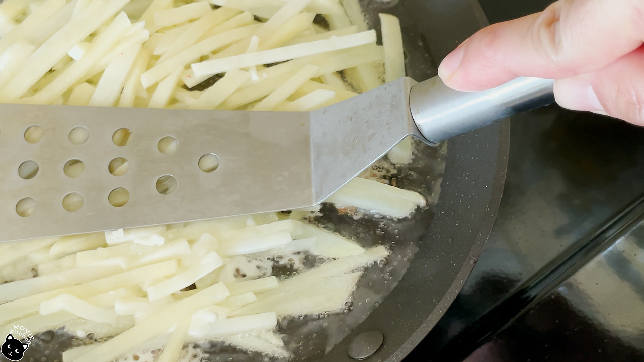 4. 양면이 바삭하게 구워지면 키친타월 등으로 기름기를 제거해준다.