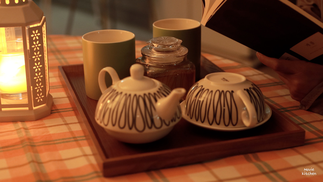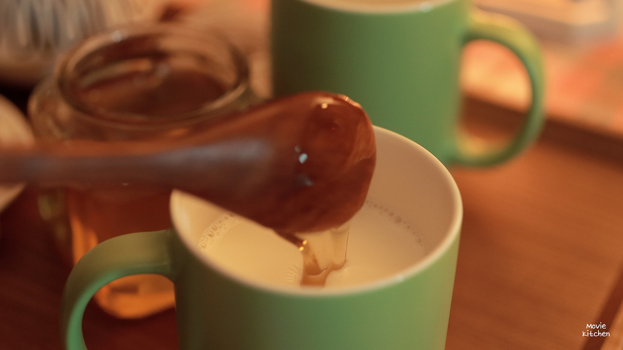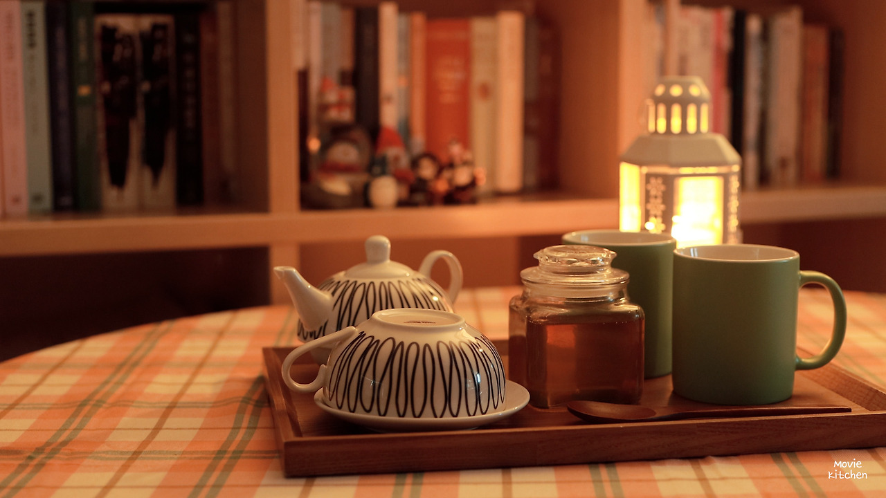 잘 자기 위해 내가 하는 몇 가지 방법들과 함께 꿀우유 만드는 걸 영상에 담았다. 영화와 최대한 비슷한 분위기를 내기 위해 이것저것 그릇들도 꺼내보았다.