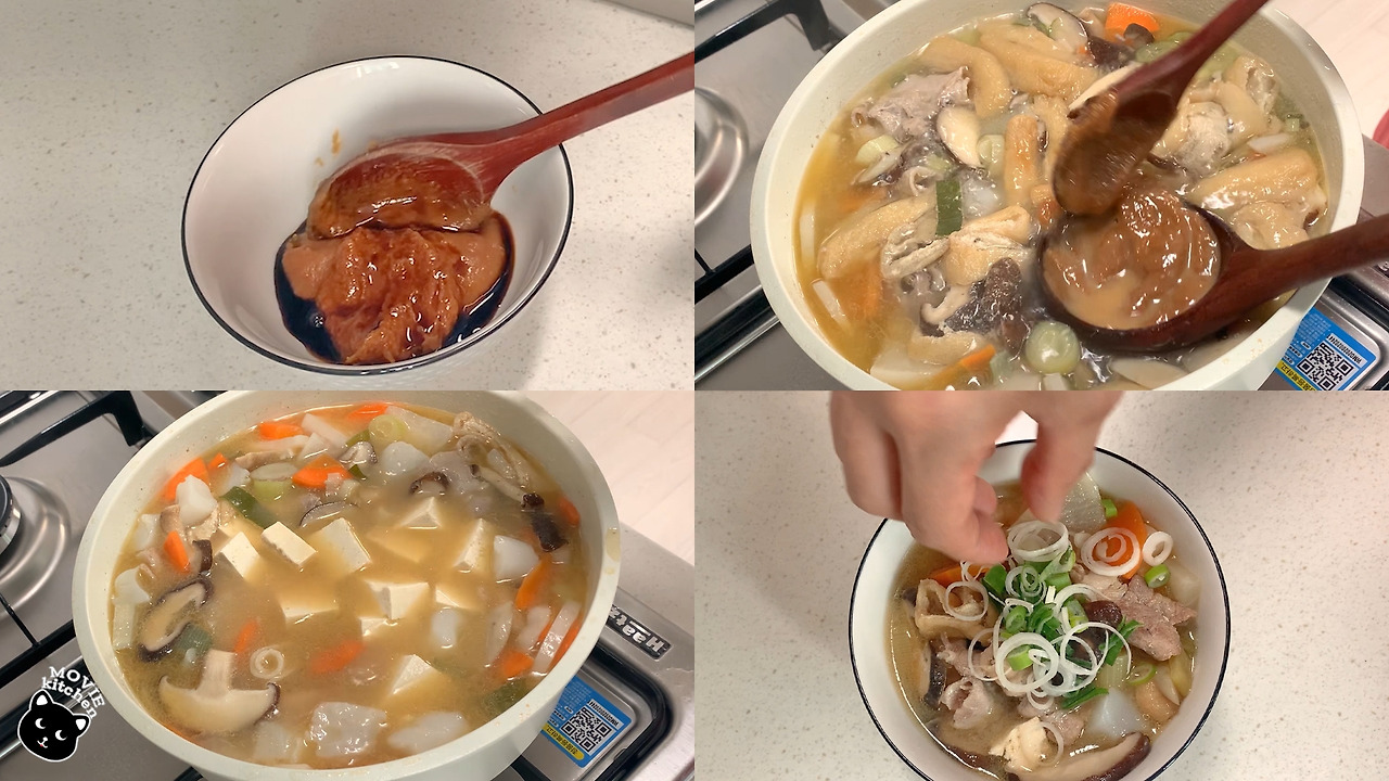 (재료의 양은 각자 알아서 하고 나중에 물 양과 간장, 미소의 양만 잘 맞추면 됨)