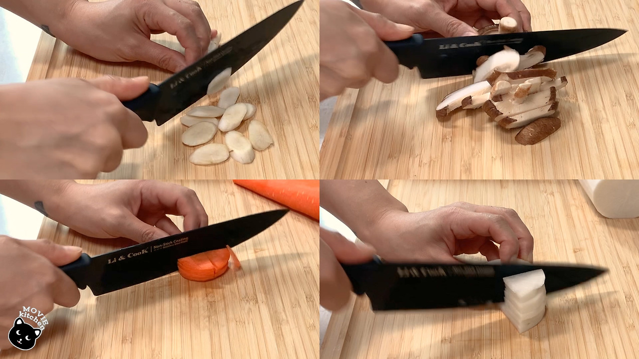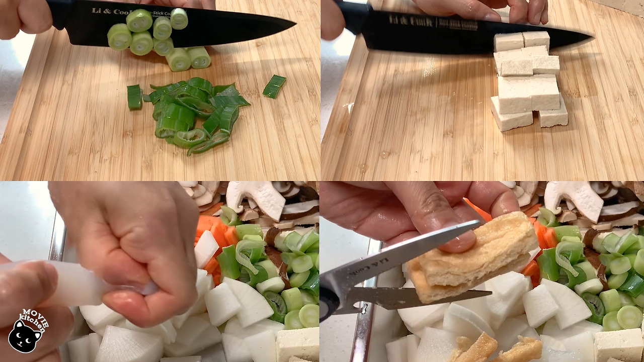 1) 준비한 채소와 두부는 적당한 두께로 썬다.