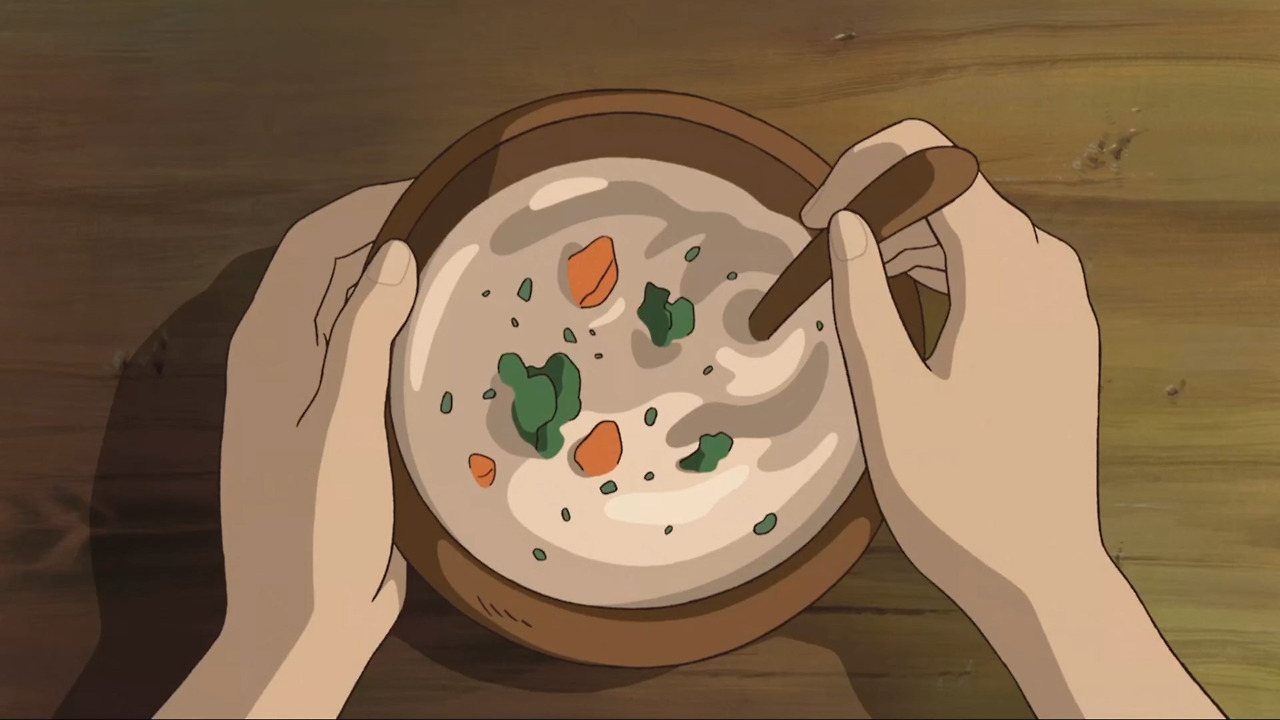 빵을 자를 때 아리에티의 표정부터 스튜를 느리게 저으면 물끄러미 바라보는 장면은 좀처럼 잊을 수가 없다.