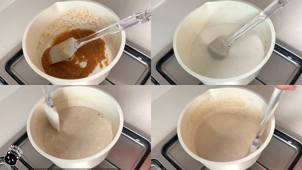 - 매끄러워지면 남은 우유를 2-3회에 나눠 넣고 잘 저어준다.