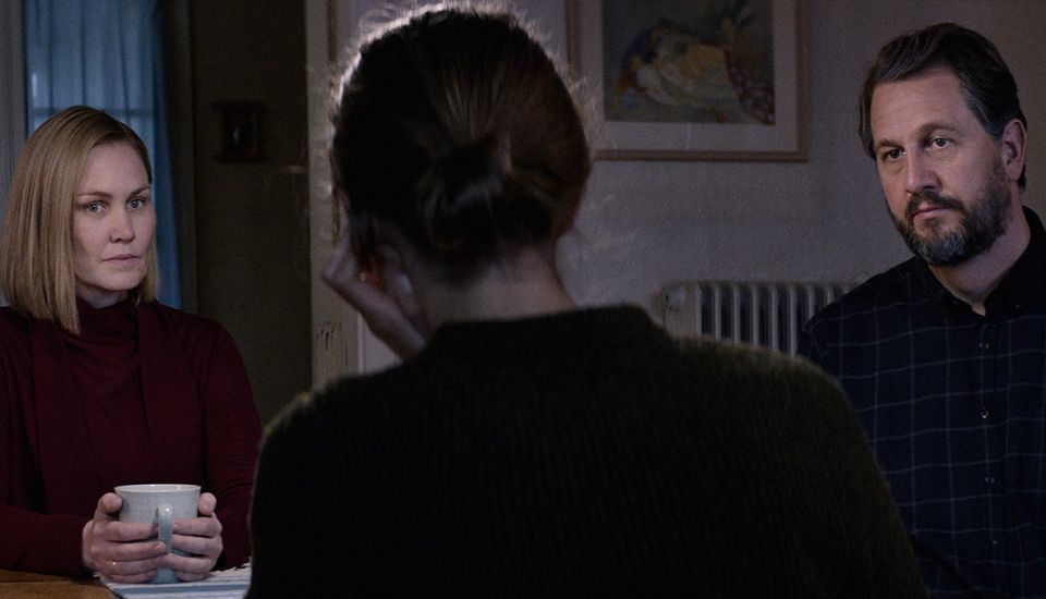 델마는 몸과 마음이 의지만 있다면 하나가 되어 자신의 원하는 상황을 만들어낼 수 있는 초자연적인 능력을 갖고 있다. 하지만, 자신의 초능력을 인지하지 못했던 유년 시절 델마는 무의식적으로 그 능력을 발휘해 남동생을 꽁꽁 언 호수 아래에 가둬 죽인다. 아빠 트론드(헨릭 라파엘센)는 엄청난 충격에 빠져 전혀 경황없는 가운데, 델마가 할머니와 똑같은 능력을 갖고 있다는 사실을 인지하게 된다. 영화는 강의를 듣고 있는 델마의 모습이 그려지는 초반부에서 트론드와 관객 모두에게 초월적인 힘을 지닌 델마가 과연 초능력자인지 아니면 악마인지에 관한 질문을 던진다. 교수는 수강생들에게 빛이 과연 파동인지 아니면 입자인지 질문을 던진 다음, 본인은 어떤 관점에서 바라보느냐에 따라 빛을 파동이자 입자라고 주장할 수 있다고 설명한다. 이는 델마를 어떤 관점에서 보는가에 따라서 다르게 규정할 수 있다는 질문과 일맥상통한다. 그런데, 오프닝 시퀀스를 미루어 본다면 트론드가 델마의 능력을 부정할 뿐만 아니라 악마로 규정지었다는 사실을 파악할 수 있다. 동생을 죽인 델마를 사악한 존재라고 판단한 트론드는 사냥을 따라나선 델마를 흰 눈으로 뒤덮인 숲 속에서 죽이기로 결심했지만, 자신의 혈육이기에 죽이는 것을 포기한다. 대신, 아빠는 부인 우니(엘렌 도리트 페테르센)과 함께 델마에게 할머니의 존재를 아예 가르쳐주지 않을뿐더러, 엄격한 교육과 신앙심으로 통제함으로써 보수적인 아이로 키우기로 마음먹었다.